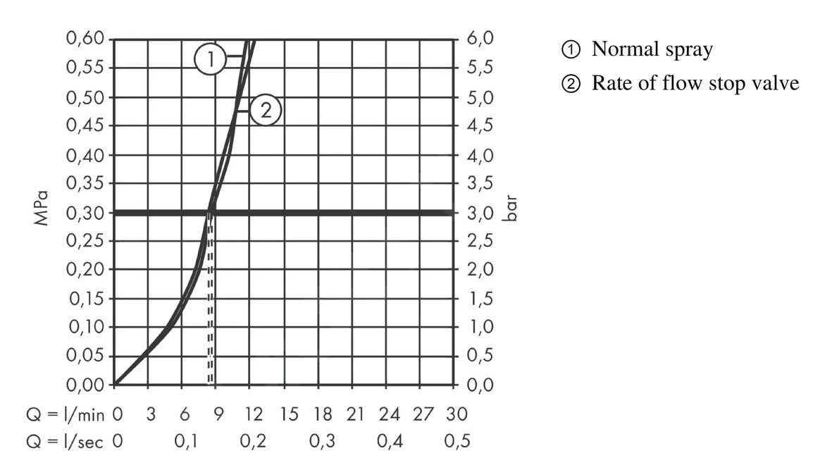 - maximale doorstroming: 8 l/min (druk 3 bar)
