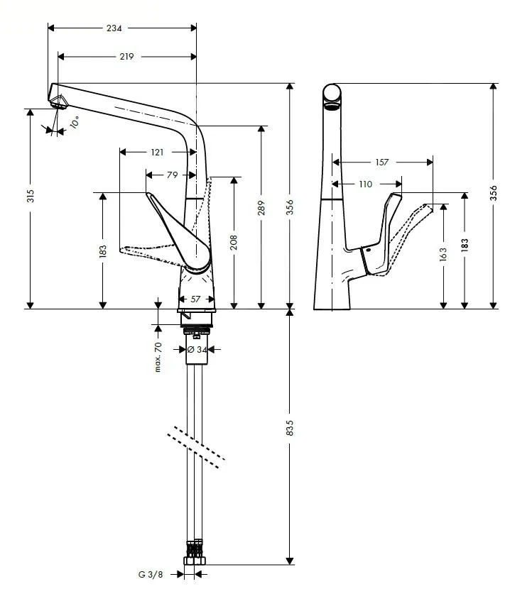 Geniet van het comfort dat uw nieuwe ComfortZone 320 u biedt. Die duidt de globale afstand aan tussen de uitloop van de kraan en de onderste rand ervan in millimeters en betekent heel veel ruimte voor de dagelijkse werkzaamheden in de keuken.