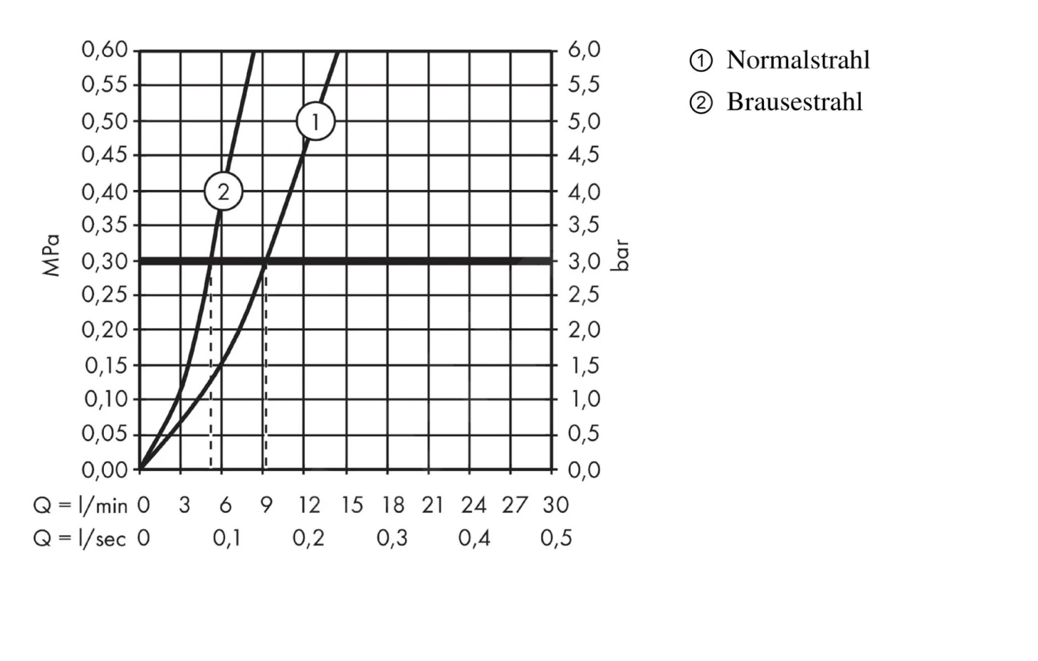 - maximale doorstroming bij 0,3 MPa: 9 l/min