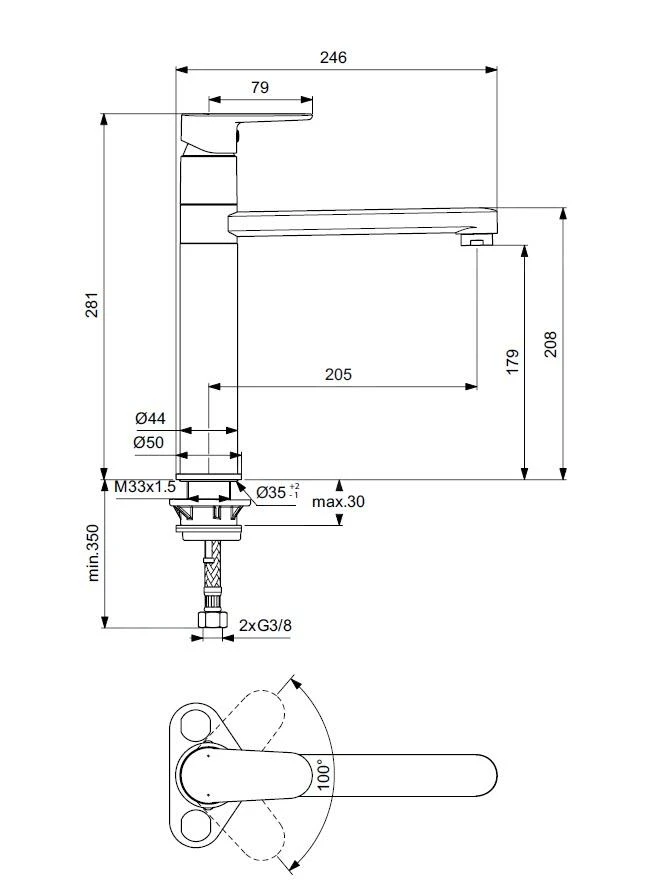 - draaibare uitloop, draaibereik 360°