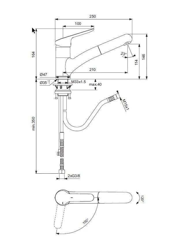 - CLICK cartouche 38 mm met keramische schijven (de kraan druppelt niet)