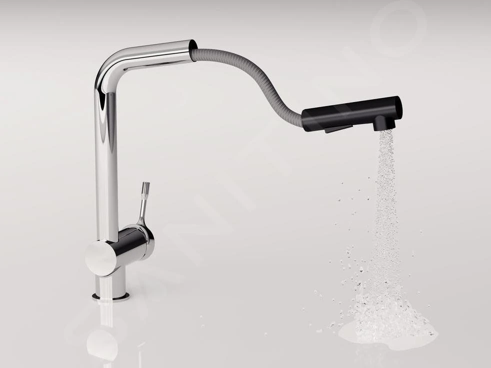 Keukenkraan met hoge, draaibare uitloop en uittrekbare douche