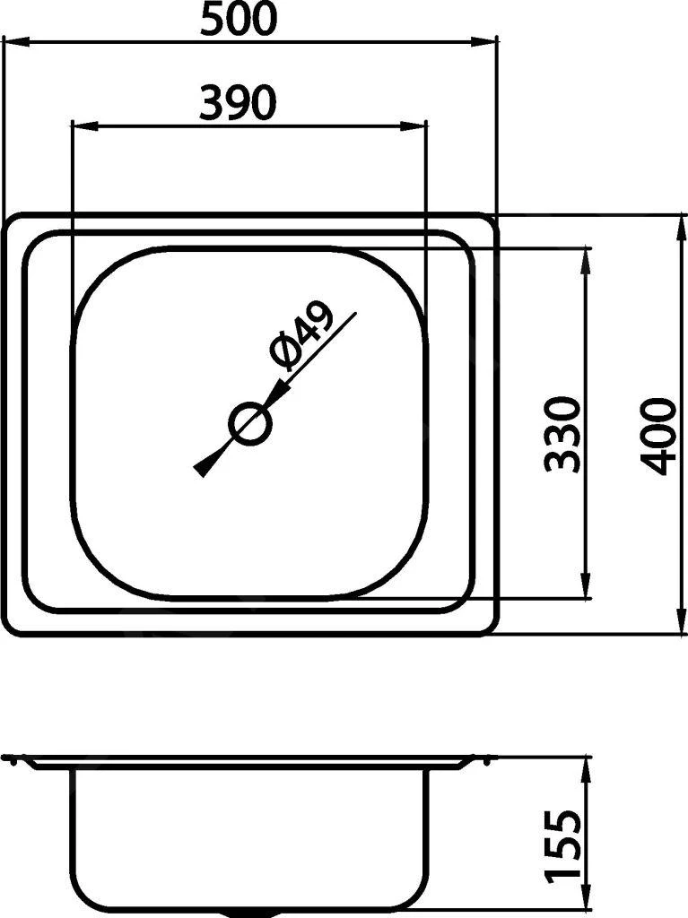 Roestvrijstalen spoelbak zonder afdruipdeel