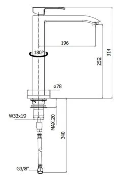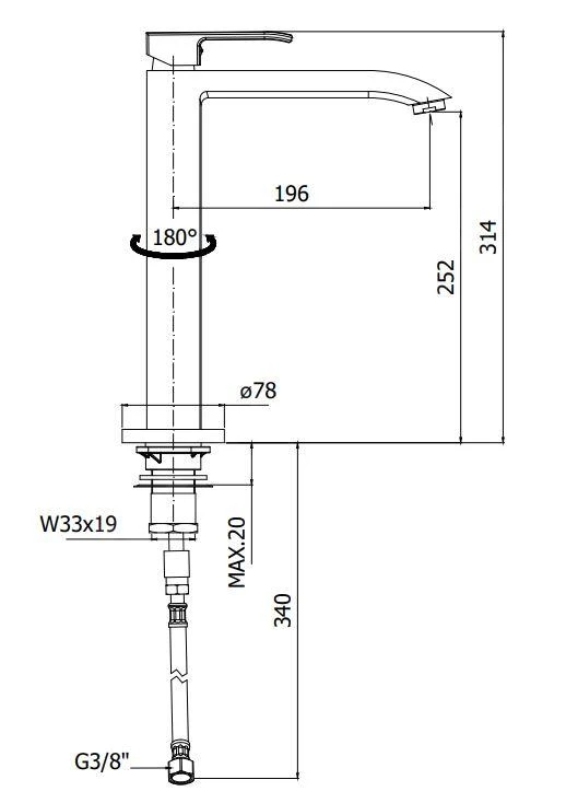 - set van 2 roestvrijstalen slangen G 3/8″ voor aansluiting op de hoekstopkranen 45 cm lang