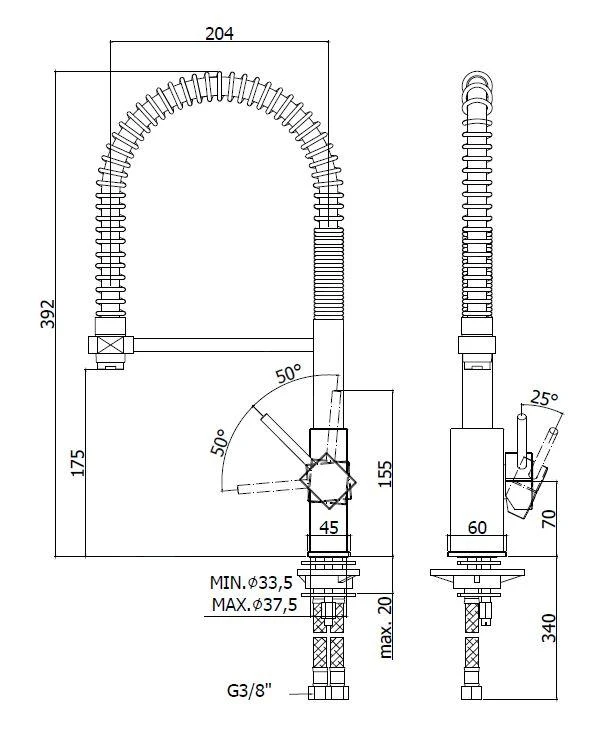- set van 2 roestvrijstalen slangen G 3/8´´