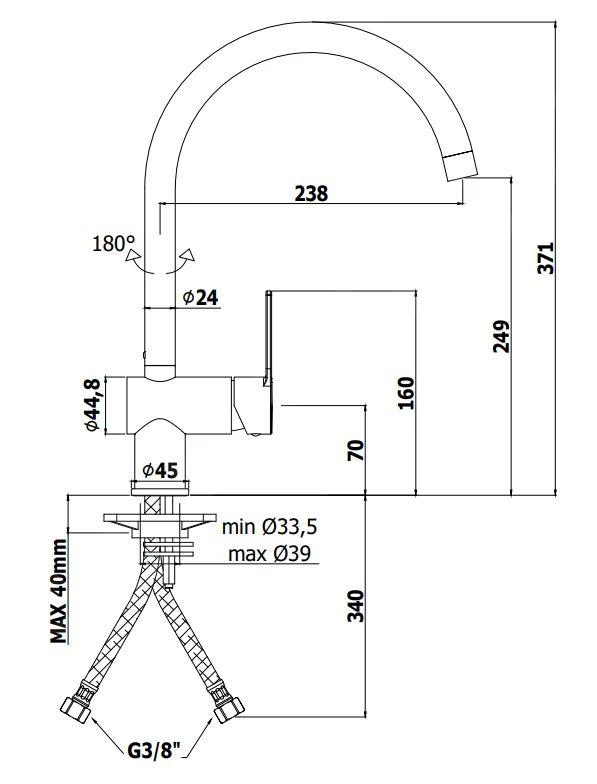 - lengte uitloop: 238 mm