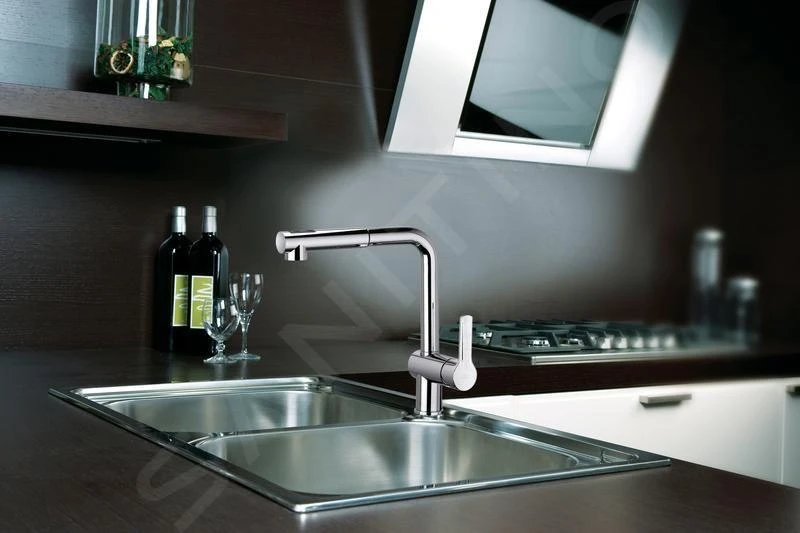 Staande eengreeps keukenkraan met uittrekbare vuistdouche met twee straalsoorten