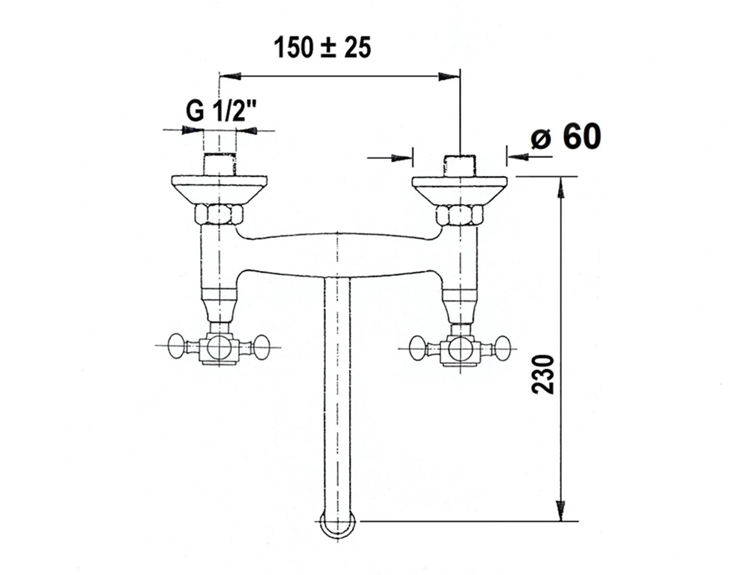 - hartafstand wateraansluiting 150 mm