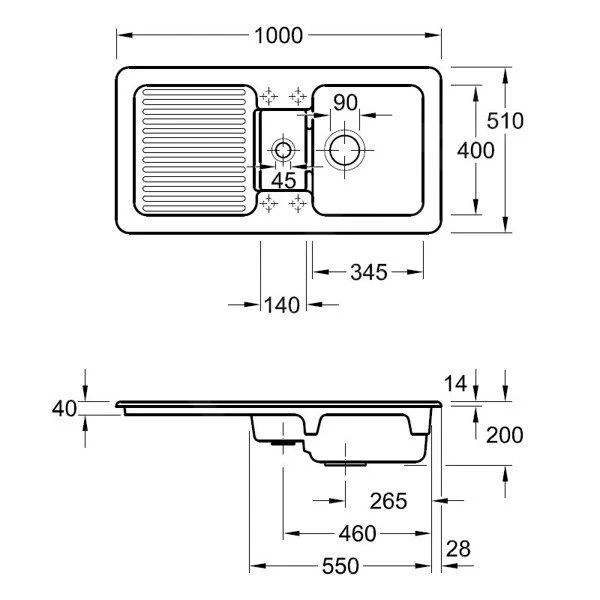 - afmetingen spoelbak: 1000 x 510 x 200 mm