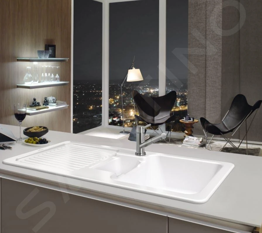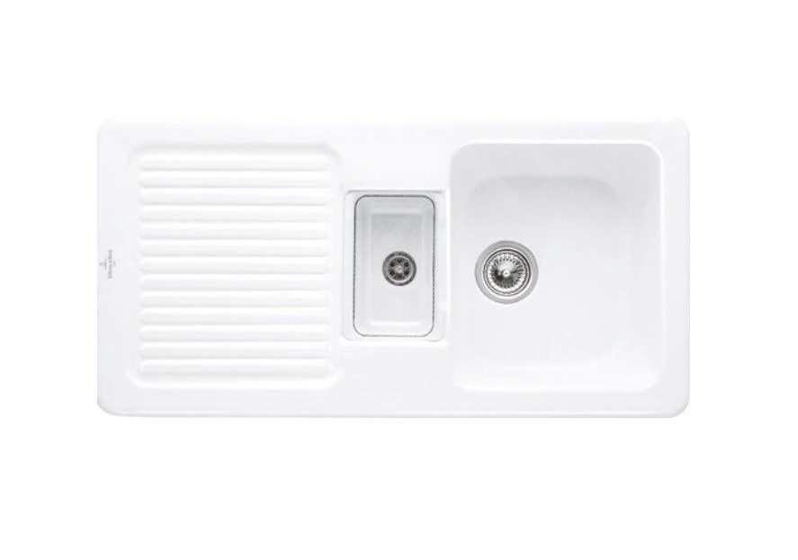 Keramische spoelbak Condor 50 met afdruipgedeelte en afvoer